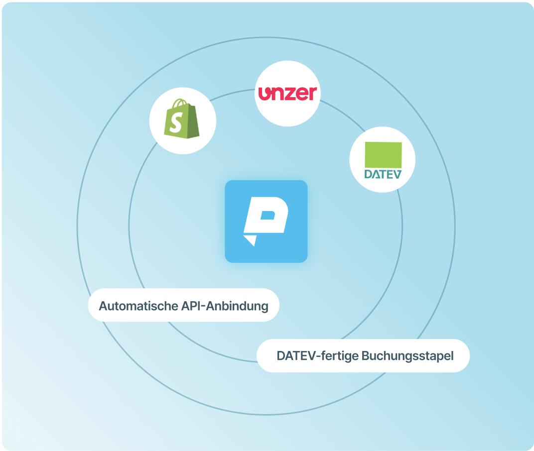 Vollautomatische Synchronisierung deiner Shop- und Zahlungsdaten mit DATEV über eine API.